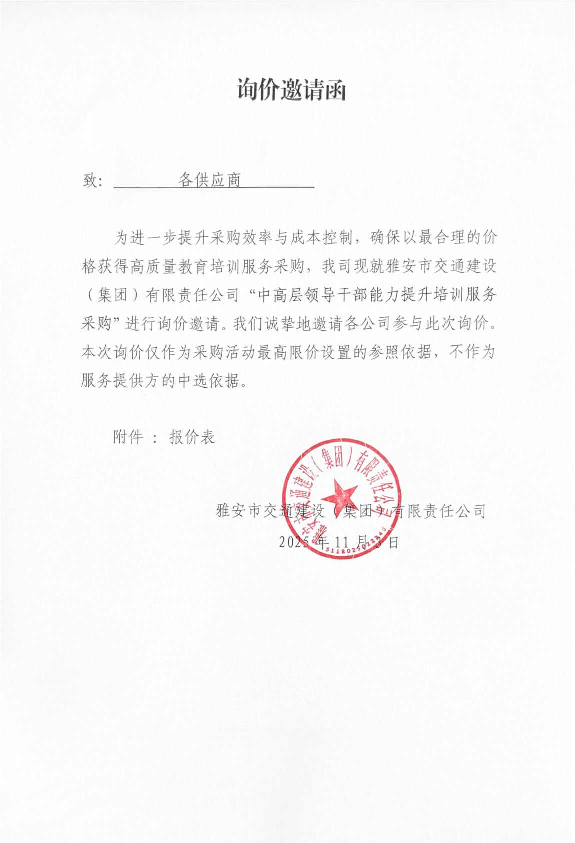 中高層領(lǐng)導(dǎo)干部能力提升培訓(xùn)服務(wù)采購(gòu)詢價(jià)邀請(qǐng)