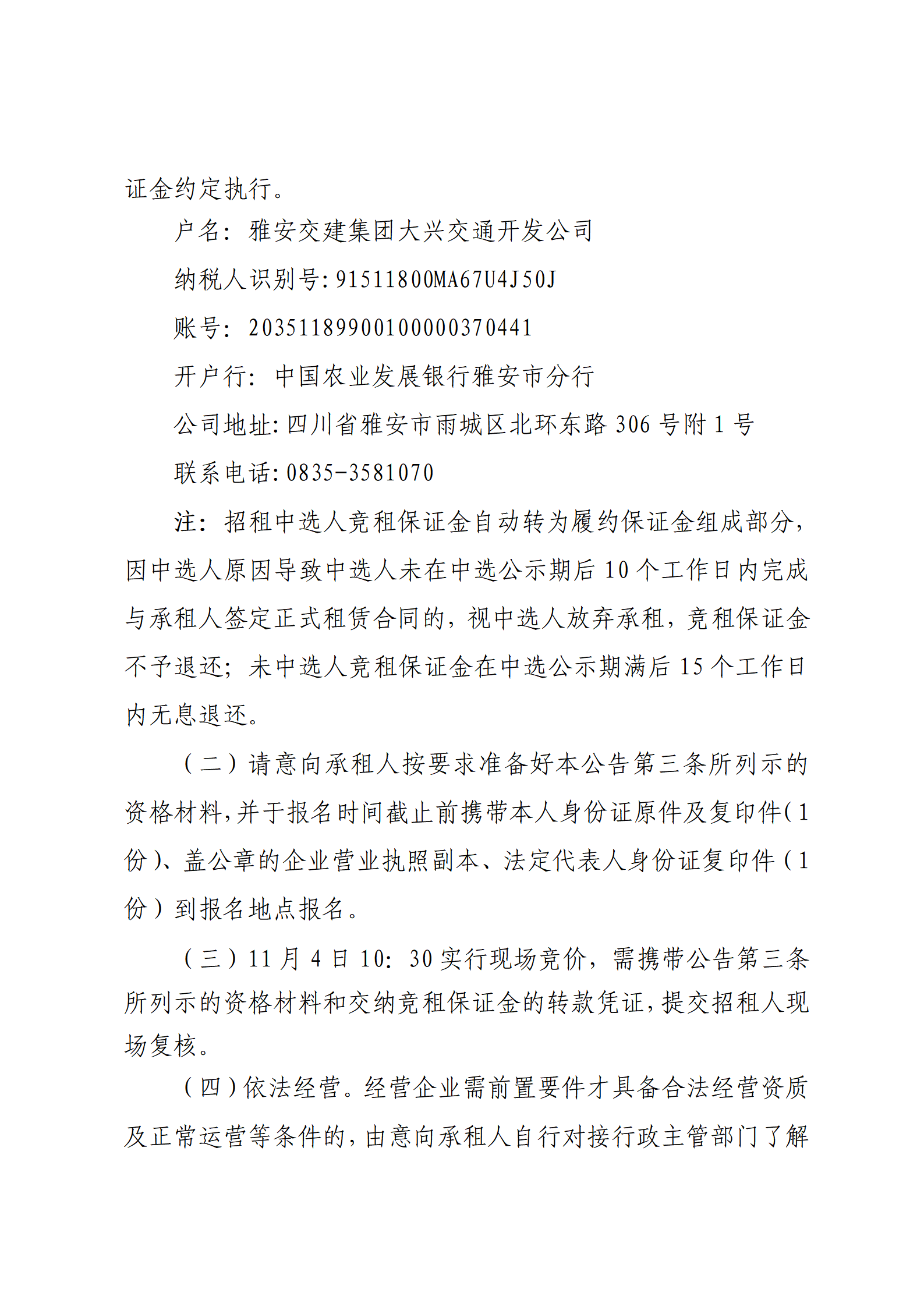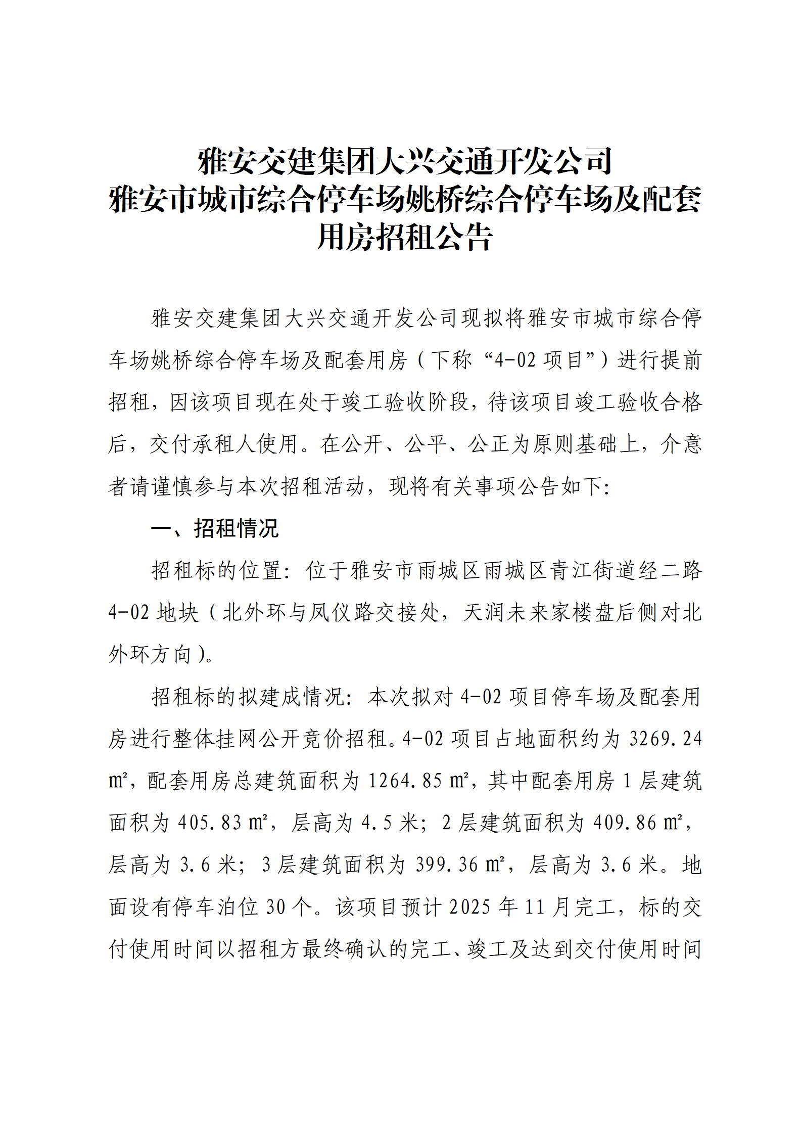雅安交建集團(tuán)大興交通開(kāi)發(fā)公司 雅安市城市綜合停車場(chǎng)姚橋綜合停車場(chǎng)及配套用房招租公告